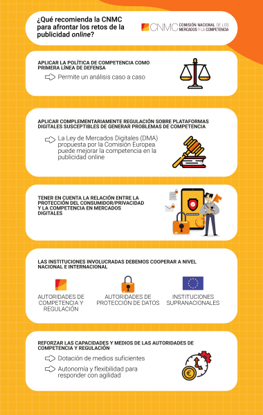 • Las autoridades de competencia deben seguir aplicando de manera continua y decidida la política de competencia como primera línea de defensa en el mercado de la publicidad online.