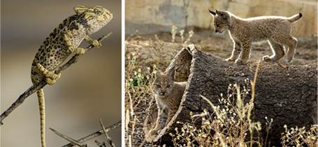 El último escenario es el que se da con especies como el búho real, Bubo bubo, la nutria, Lutra lutra o el camaleón, Chamaeleo chamaeleon, especies muy populares pero poco amenazadas cuyas poblaciones se ven reforzadas con proyectos de reintroducción no tan necesarios.